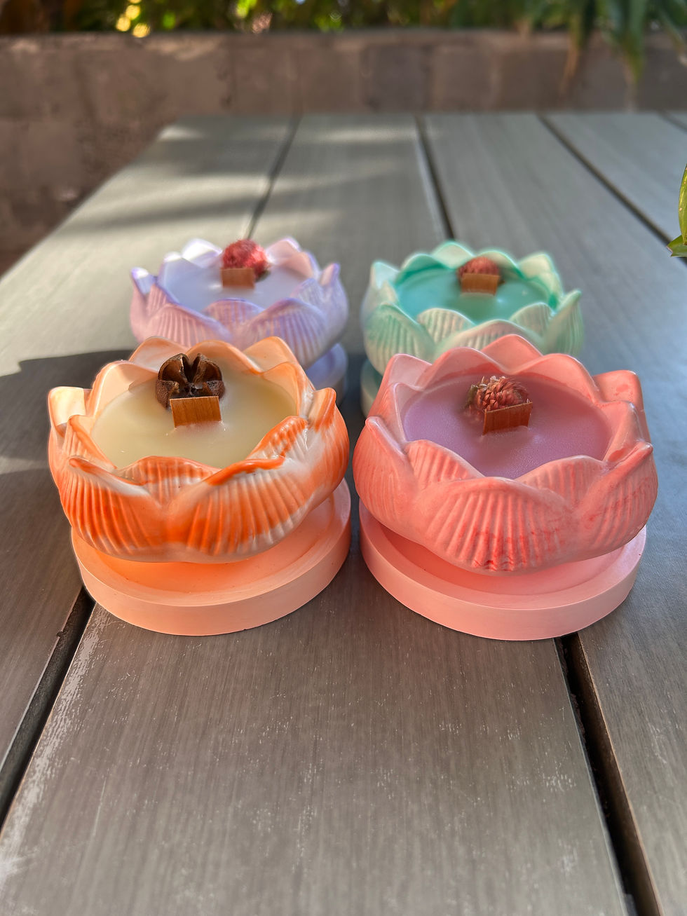 Ingredients- Soywax/Beeswax Blend, Pure essential oils, wooden wick with metal stand, Natural dried Flowers.